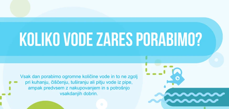 Po podatkih mednarodne mreže Water Footprint Network vsak od nas porabi 5.000 litrov vode na dan, kar je enako velikosti manjšega bazena. Pri tem največ vode porabimo s potrošnjo živil in dobrin.